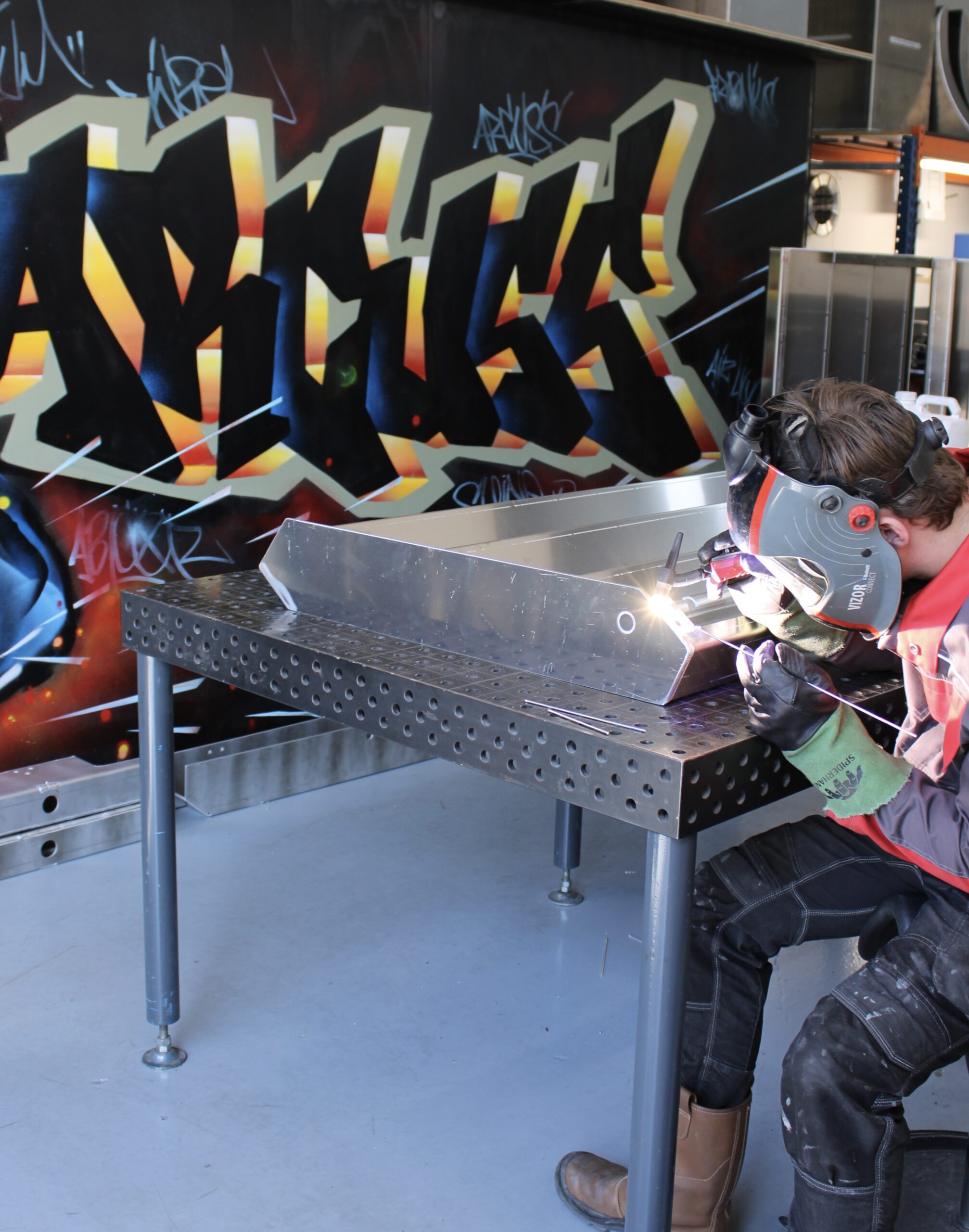 Wij bieden gecertificeerde lassen, custom ontwerpen, gebruik van kwaliteitsmaterialen en het Fronius PMC lasproces met manipulator voor nauwkeurige verbindingen.